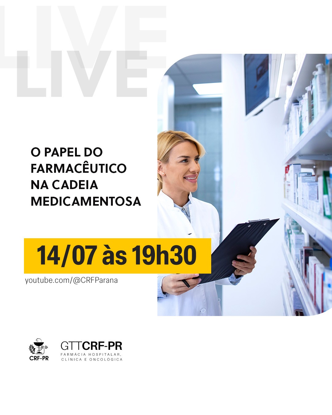 Onde? A live será transmitida pelo YouTube do CRF-PR (https://www.youtube.com/live/nemysvs7ZGg)