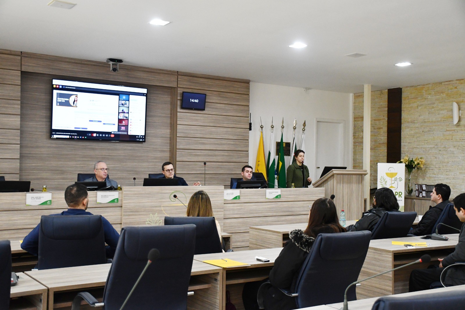 Na sequência, a Dra. Flávia de Abreu Chaves, gerente do setor de Cadastro Pessoa Física, apresentou os principais serviços oferecidos pelo Conselho, além da estrutura organizacional do CRF-PR e os canais de atendimento disponíveis aos profissionais. Sua participação teve como objetivo orientar os recém-inscritos sobre como utilizar os recursos da instituição de forma eficiente desde o início da carreira.